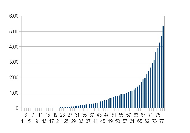 今日の感染者数を確認すると、昨日より一気に600名近く増えて5347名。1/24からの感染者数のグラフを描くと以下の通り。すでに感染爆発の領域に入っていると思われます。